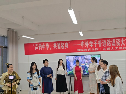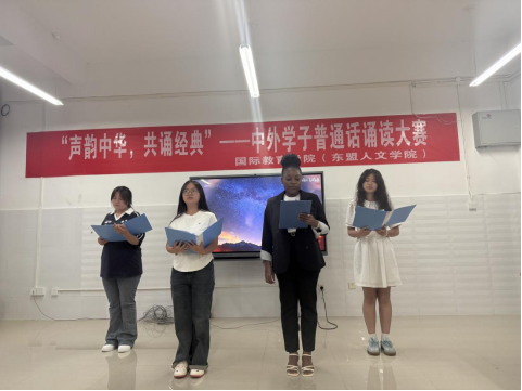为响应第 28 届全国推广普通话宣传周号召,促进中外文化交流,提升学生语言应用能力与人文素养,9 月 23 日,国际教育学院(东盟人文学院)举办 “声韵中华,共诵经典”——中外学子普通话诵读大赛,以赛为桥,推动国家通用语言普及与中外文化交融。