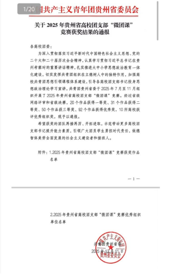 近日,东盟人文学院团委选送作品《星火遵义,精神长征》在2025年贵州省高校团支部“微团课”竞赛中表现突出,荣获三等奖。