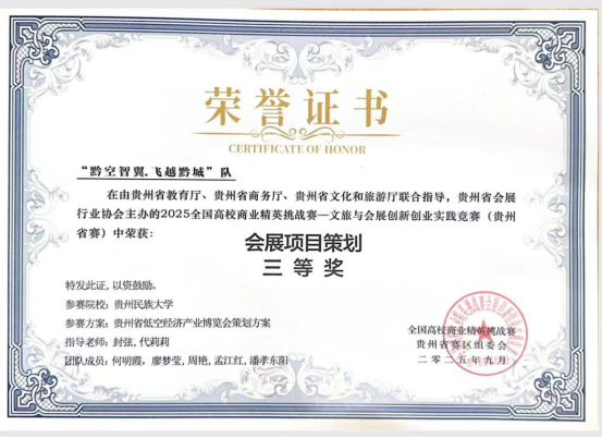 为进一步推进我院非通用外语类专业人才培养质量建设,充分展示学生专业学习成果,近日,在2026年(新加坡)国际商务活动策划大赛中国地区选拔赛暨第十九届全国高校商业精英挑战赛文旅与会展创新创业实践竞赛全国总决赛中,我院 2023 级老挝语专业学生孟江红表现优秀,荣获三等奖,为学院赢得荣誉。